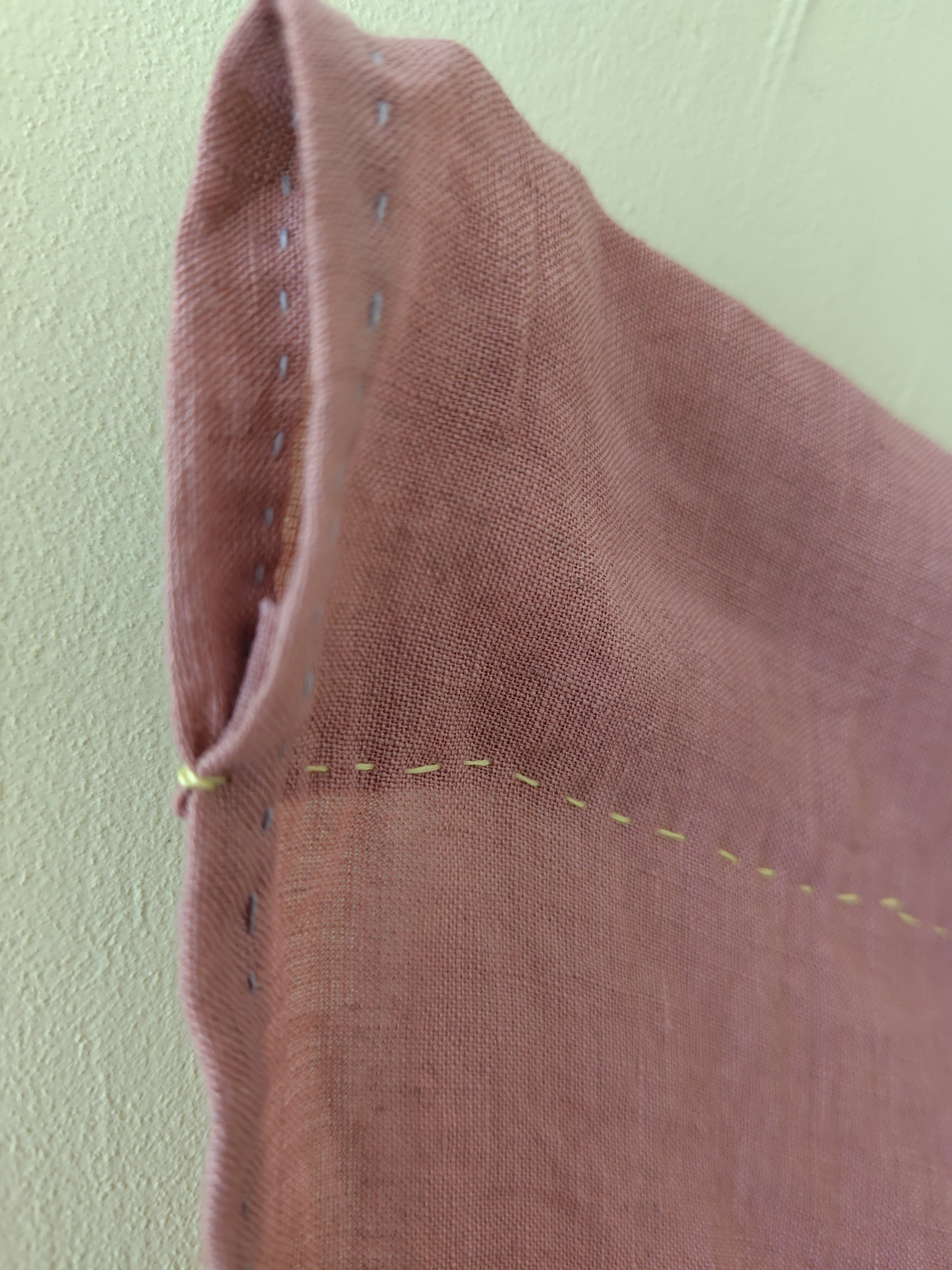 すべて手縫いで縫っています。 またフリーハンドでの裁断ですのでゆがみもあります。