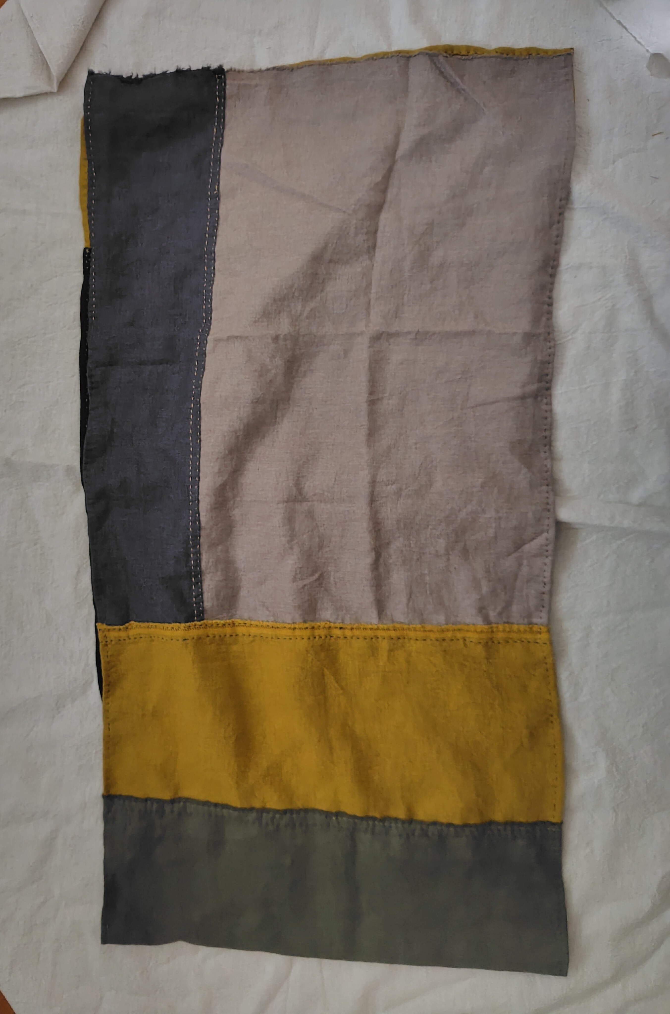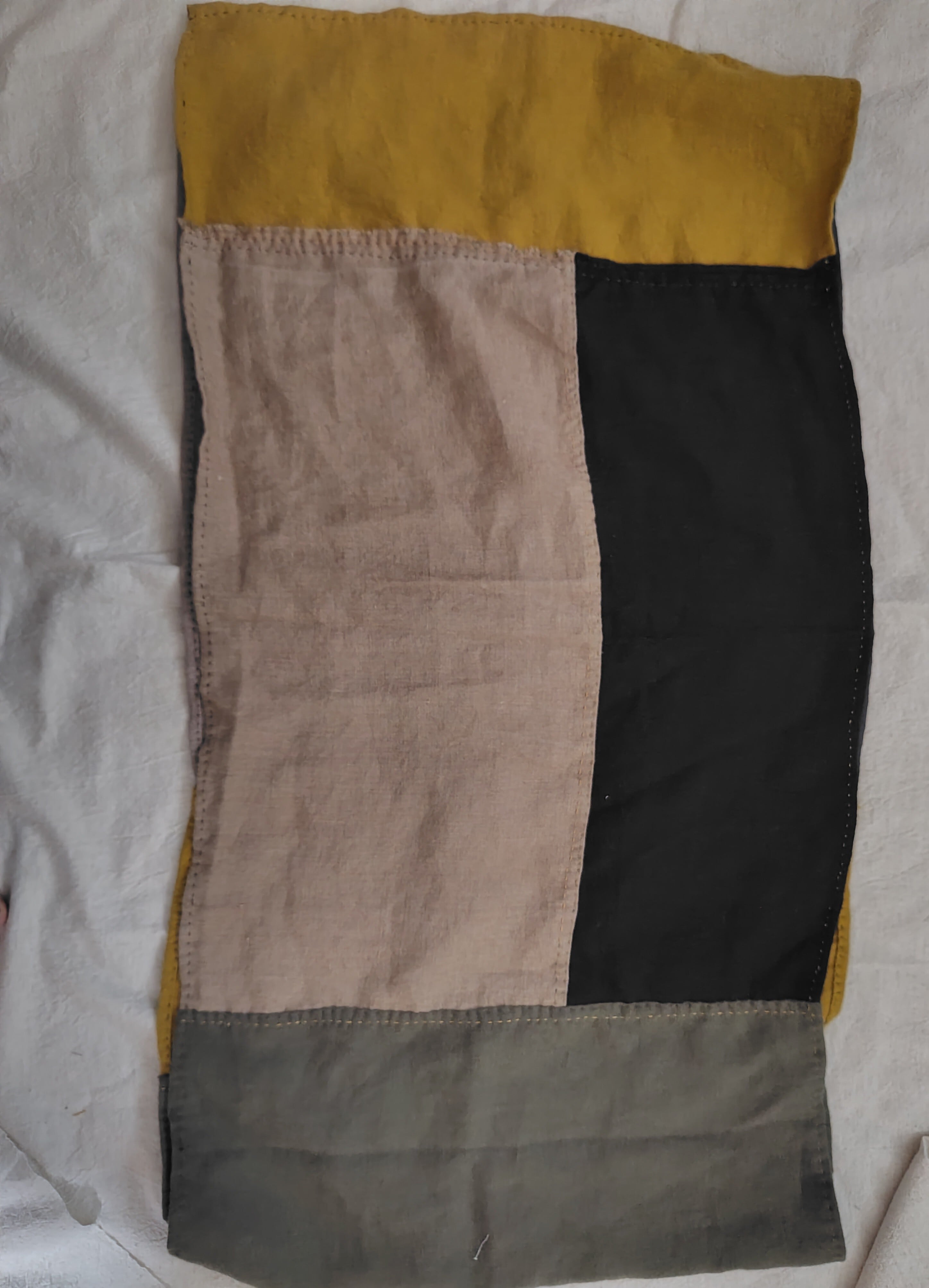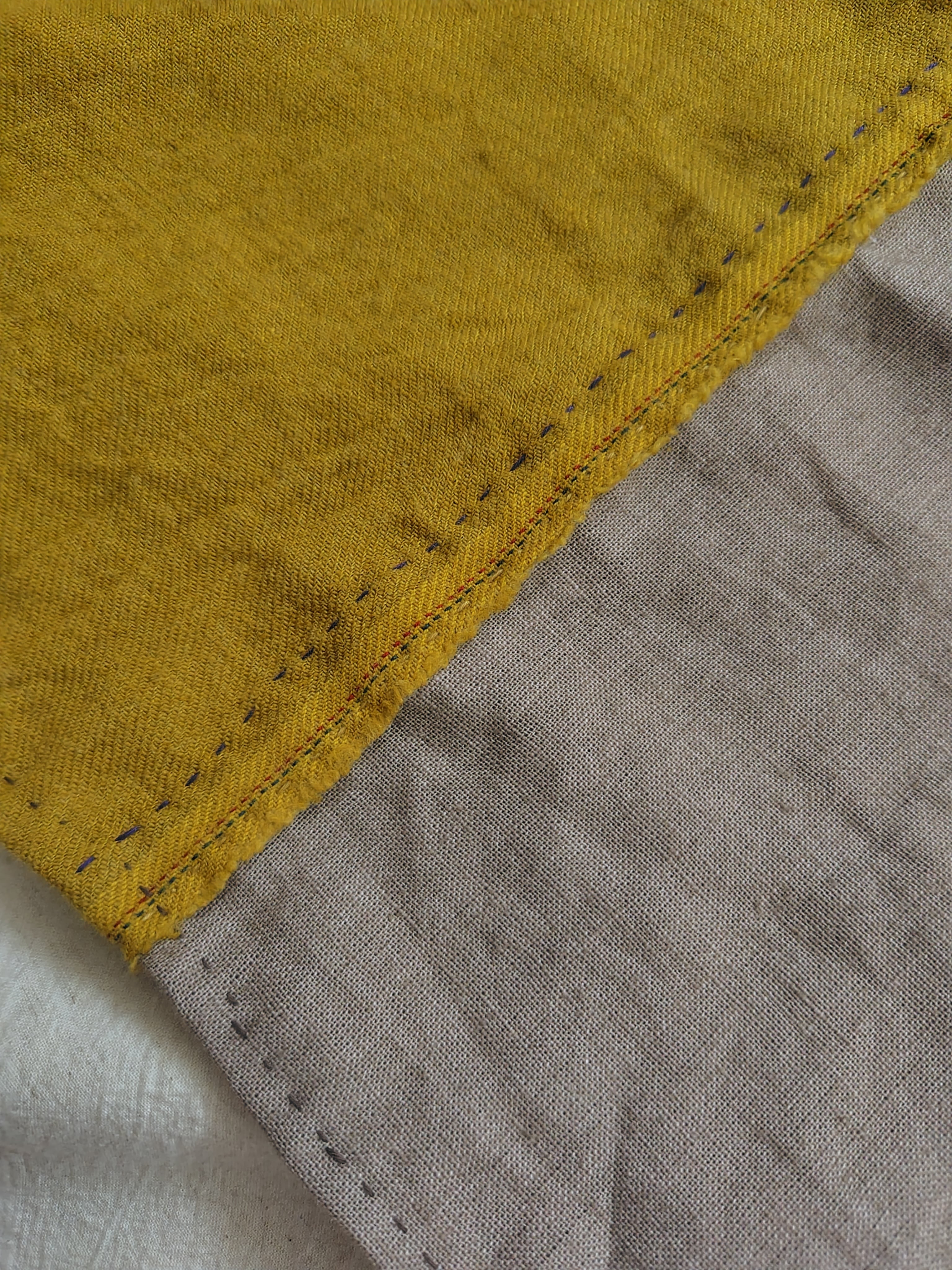 起毛のリネン(ベージュ、カーキ、グレー)、リネンウール(黒、マスタード色)を使用しました。とても柔らかくて肌触りのいいストールです。