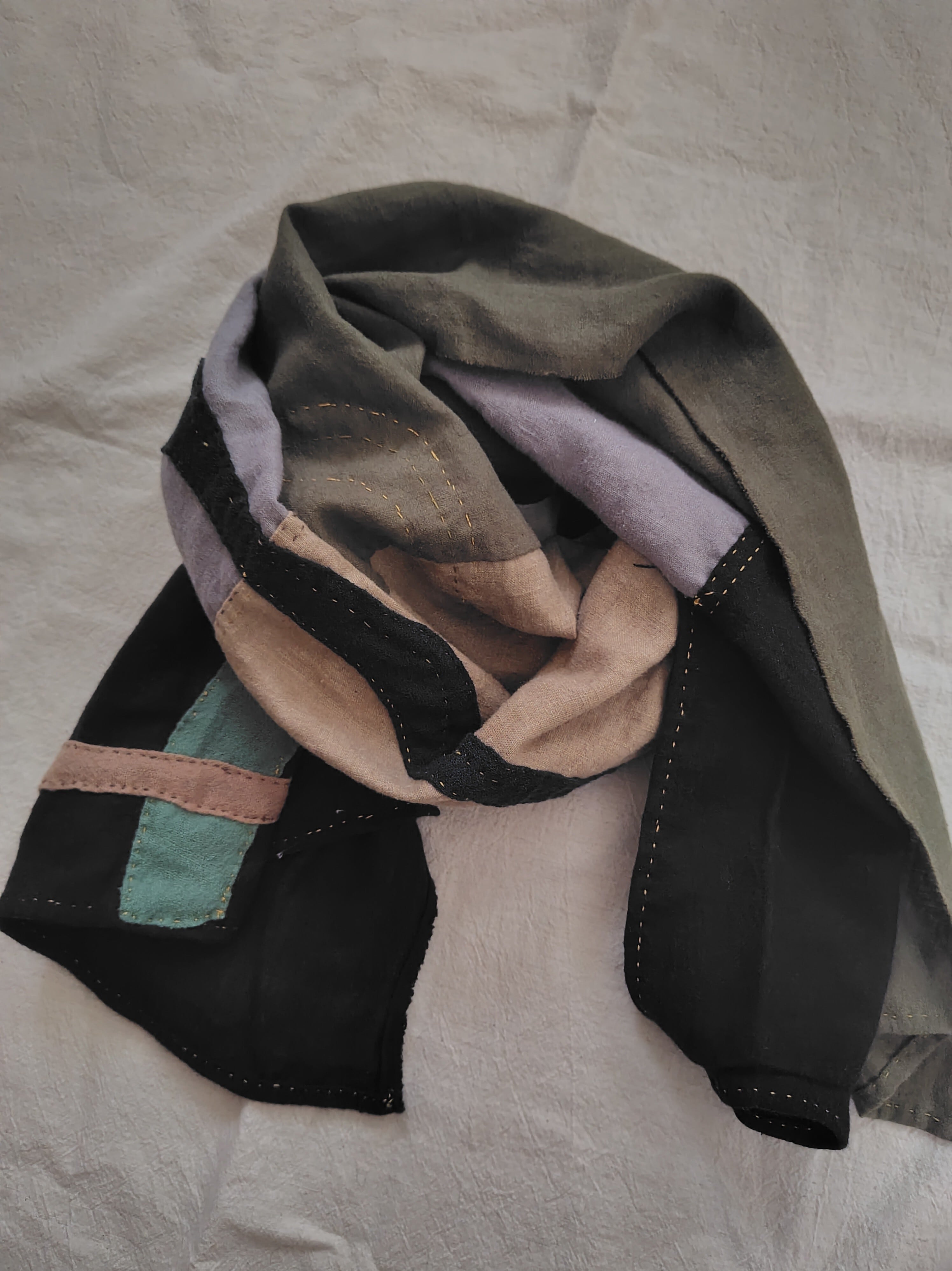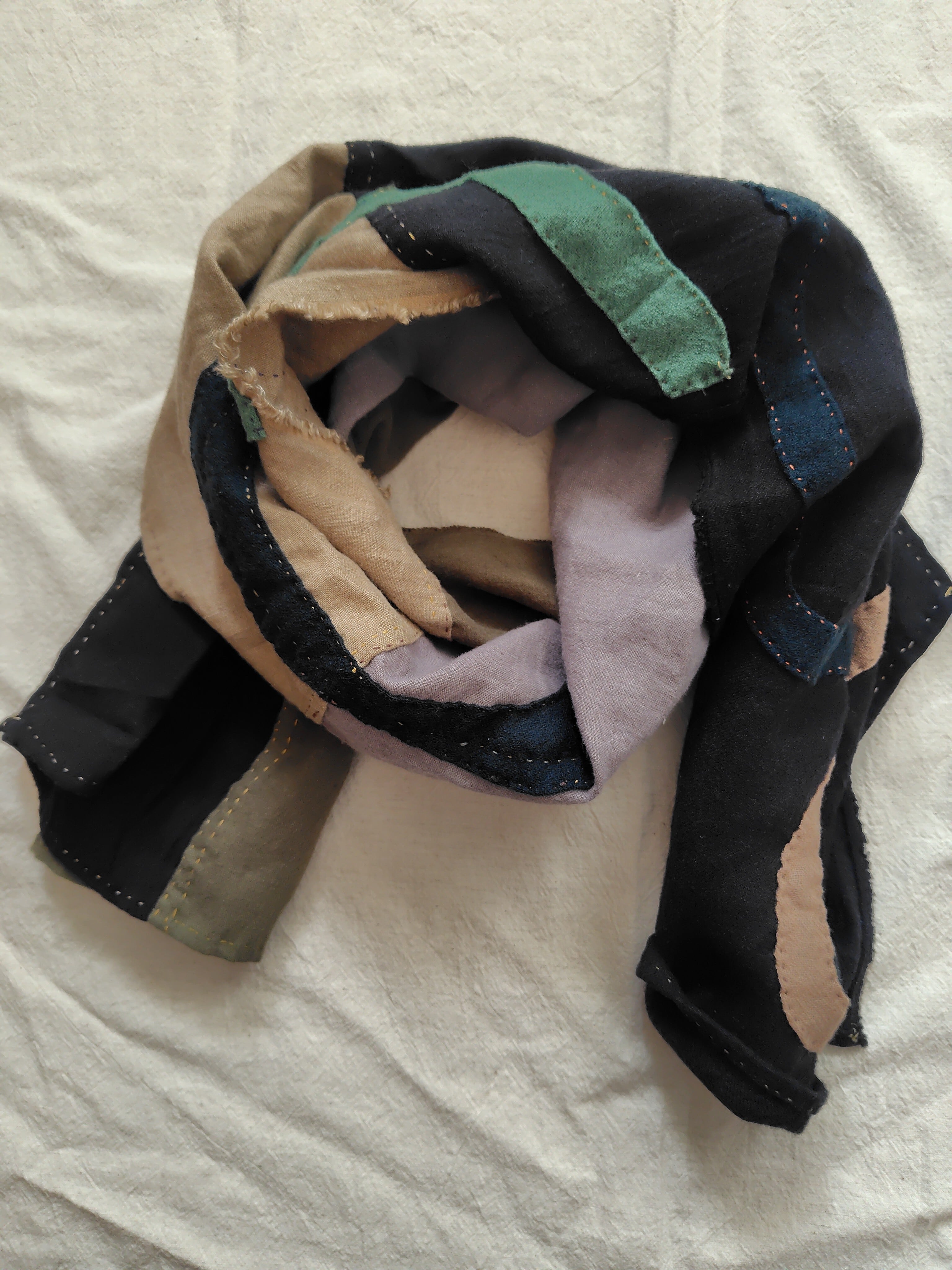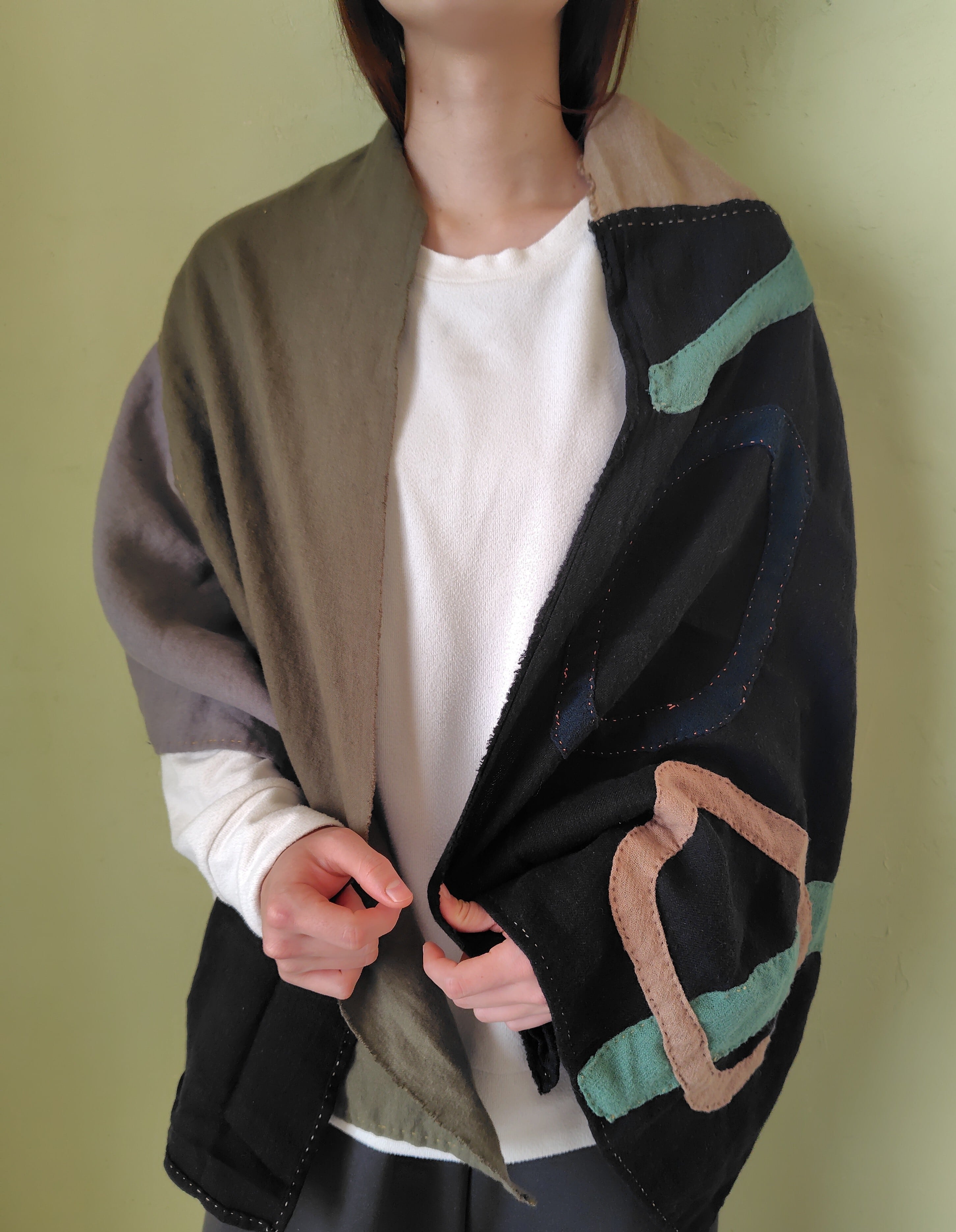 その上からウールガーゼでコラージュをしています。とても柔らかくて肌触りのいいストールです。