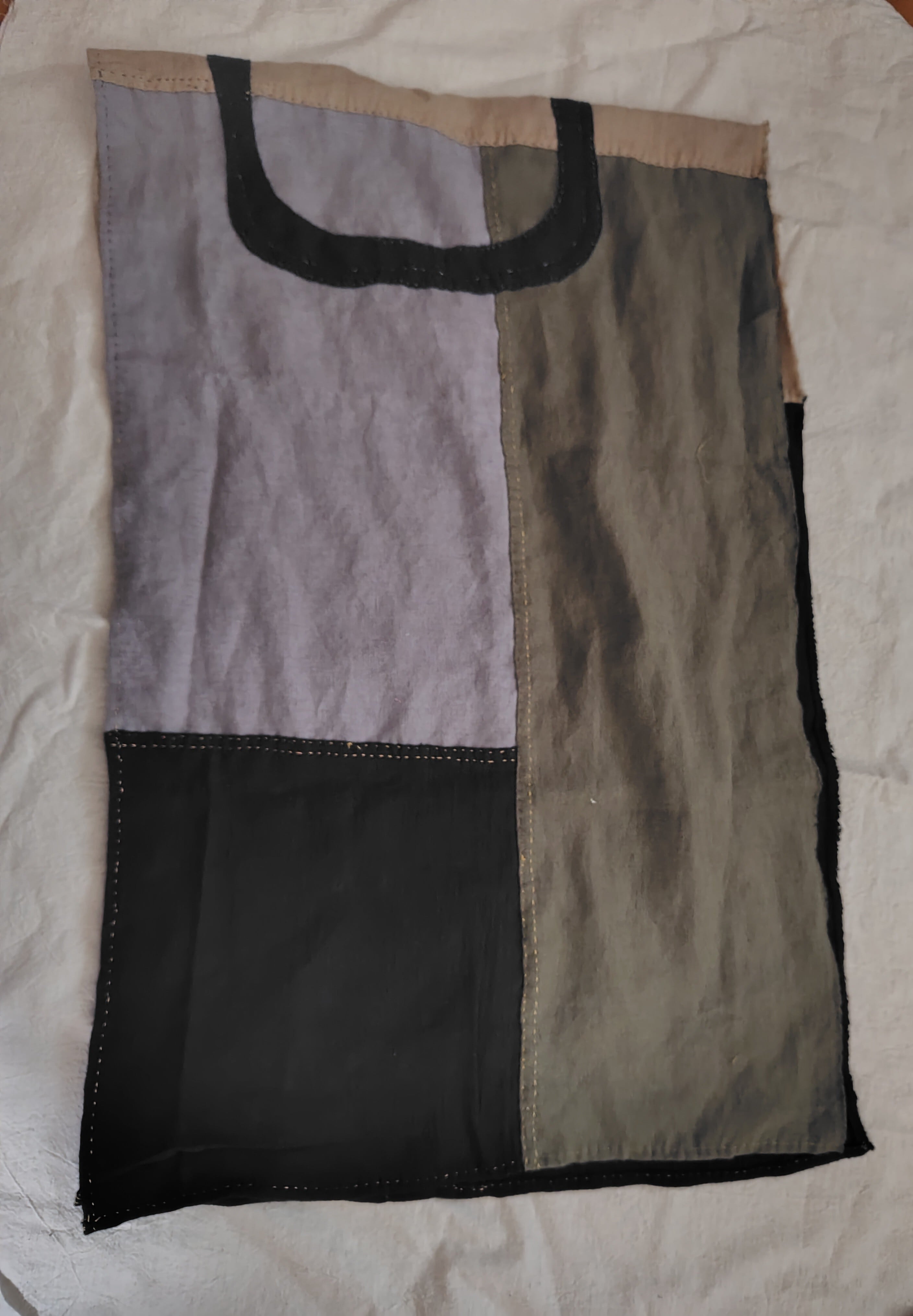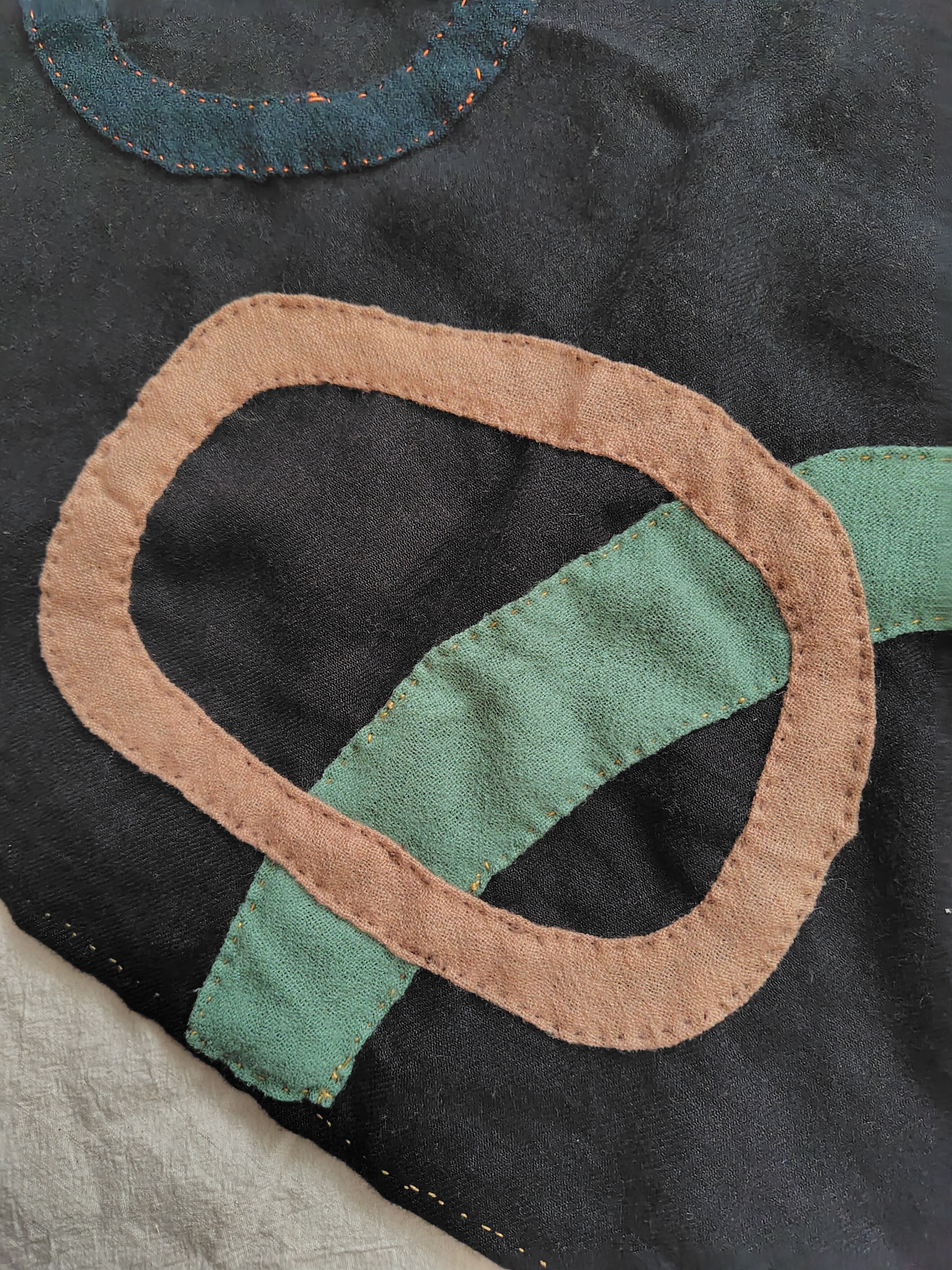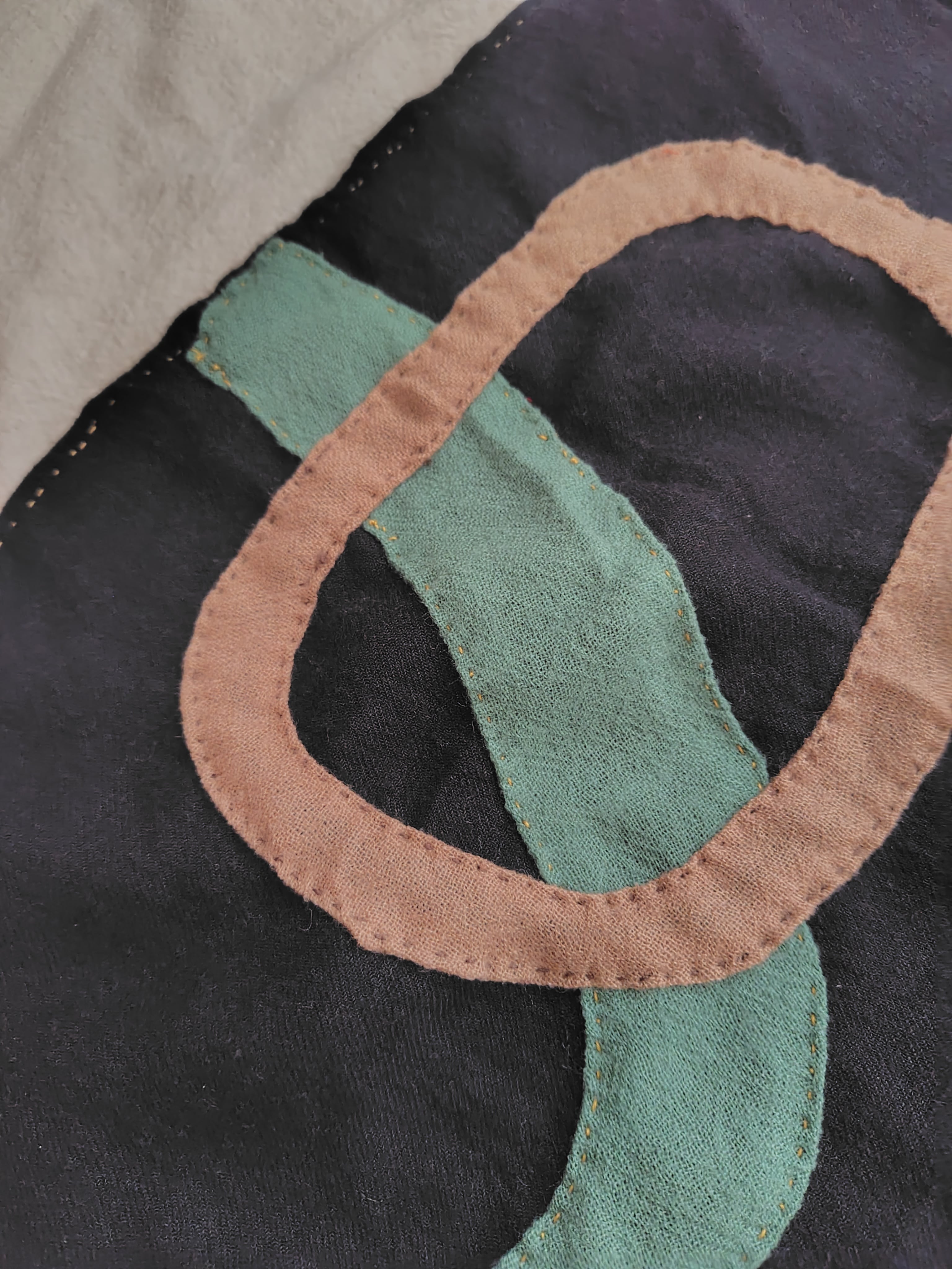 その上からウールガーゼでコラージュをしています。とても柔らかくて肌触りのいいストールです。