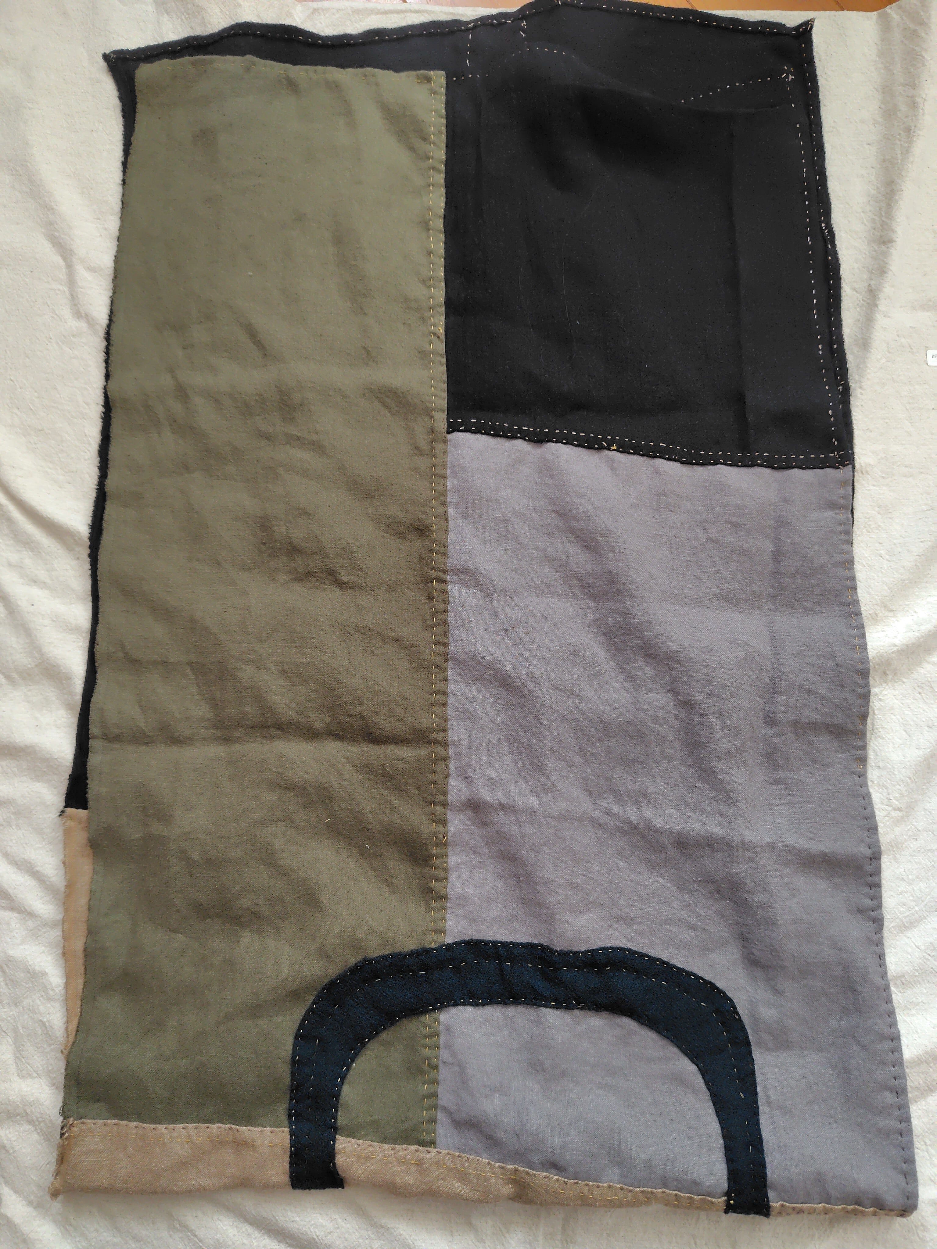 起毛のリネンを使用しました。色はグレー、カーキ、ベージュ、黒です。