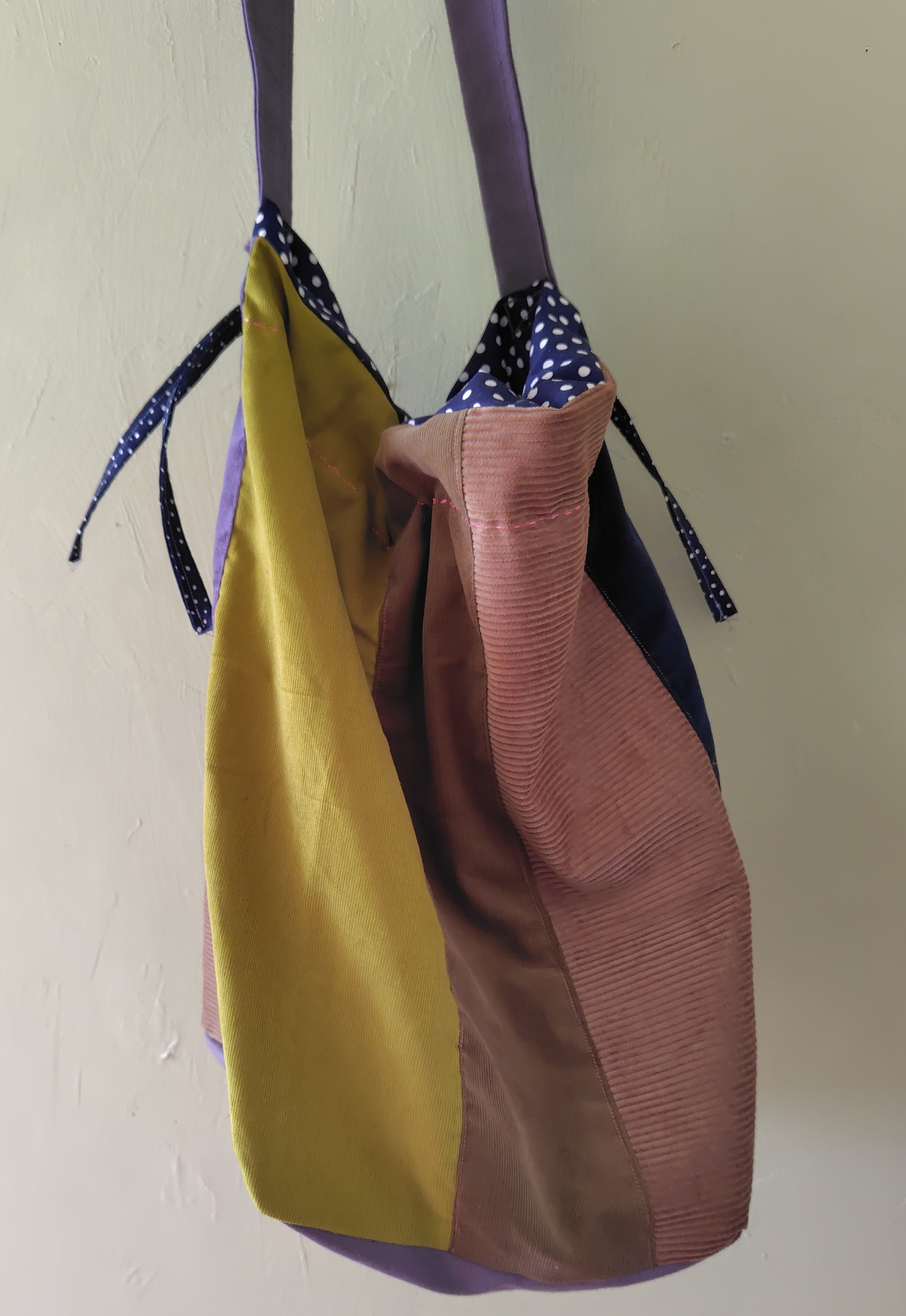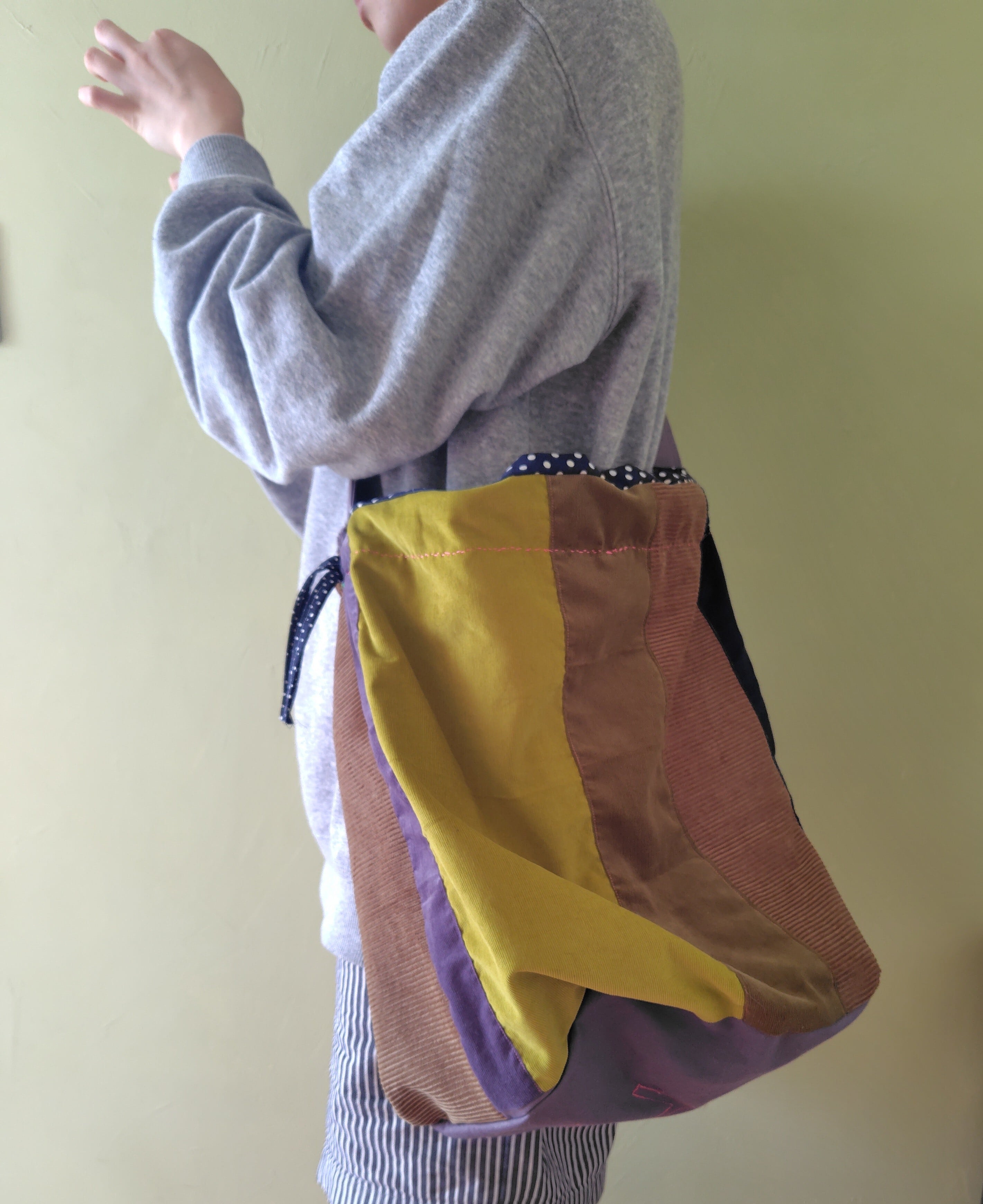 底の部分と持ち手は、しっかりはりのある帆布(紫色)を使用しています。