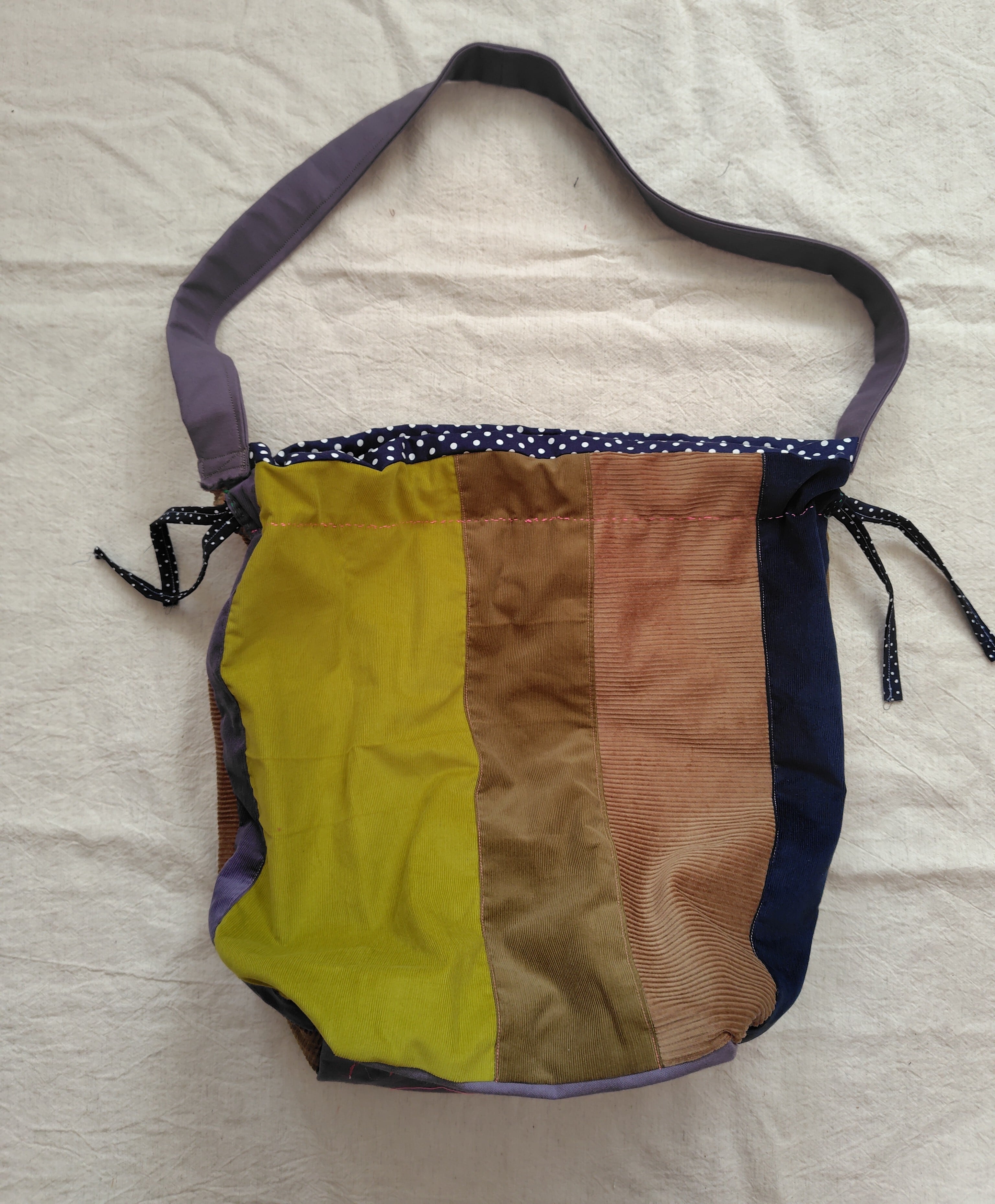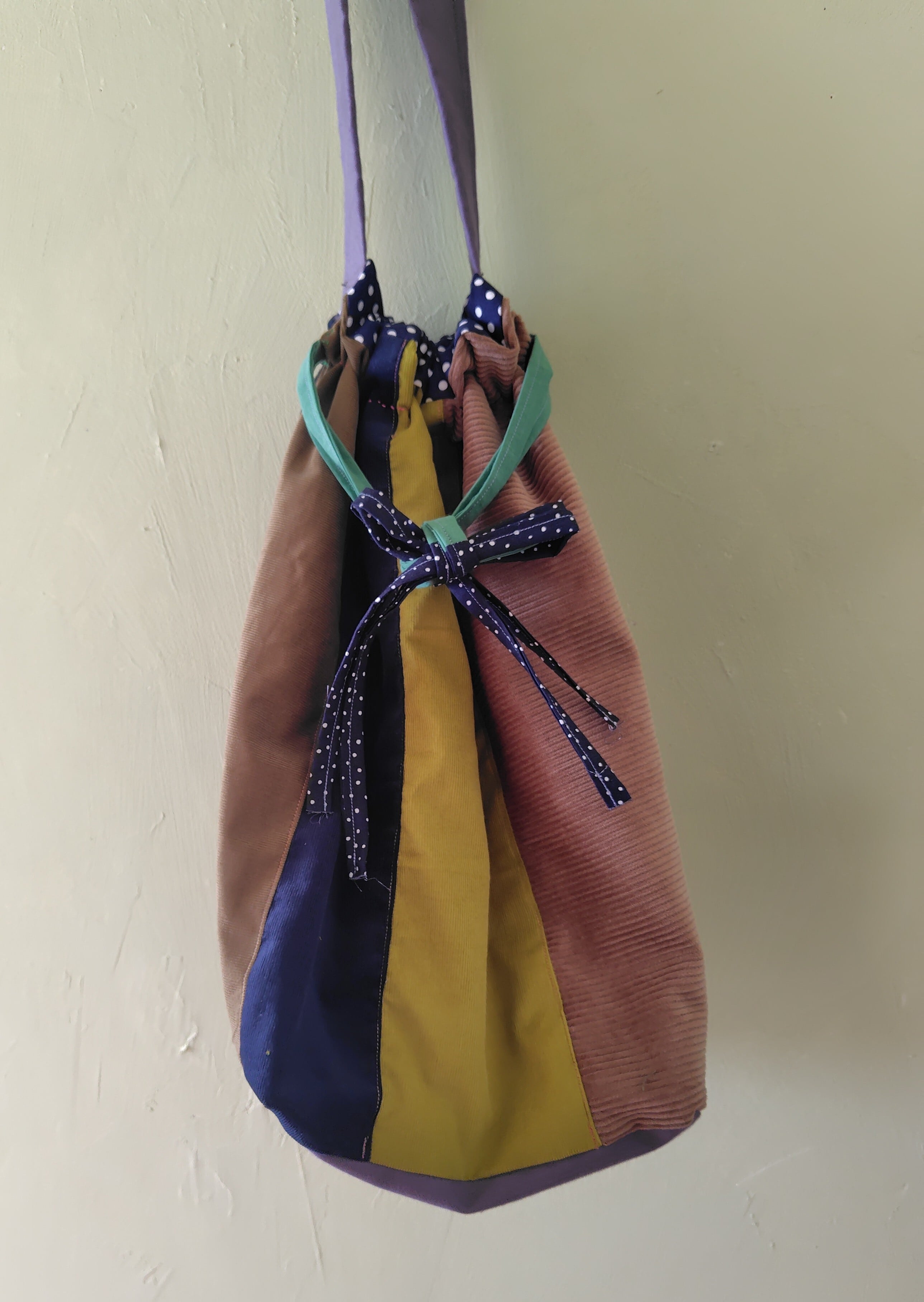 薄手の細畝コーデュロイ生地をストライプのようにつなげました。
