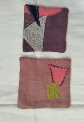 リネン生地とリネンワッフル生地を合わせました。上から布をコラージュのようにちくちくとぬいつけています。