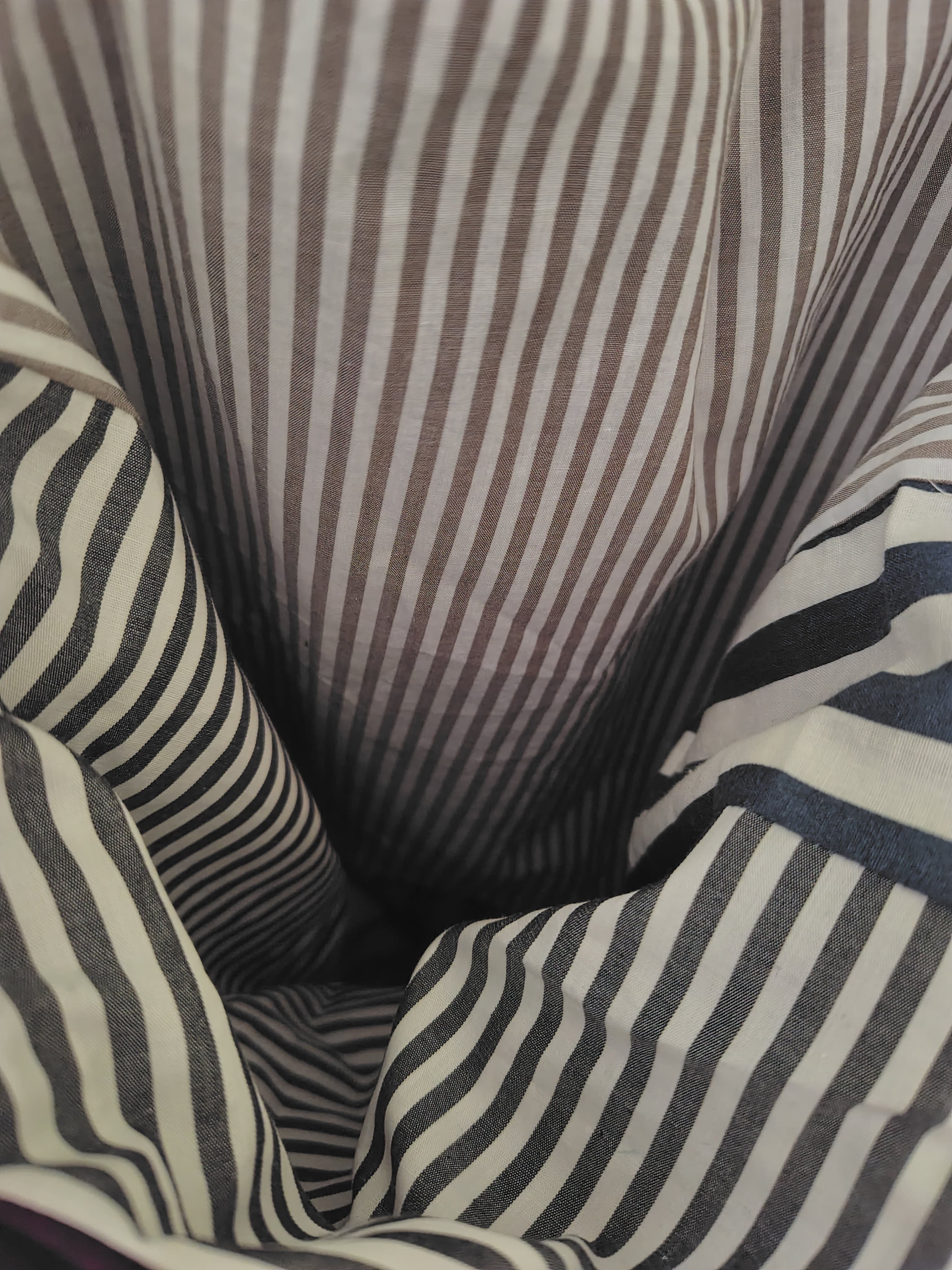 内布はチェックやしましまのコットン布をパッチワークのように合わせました。